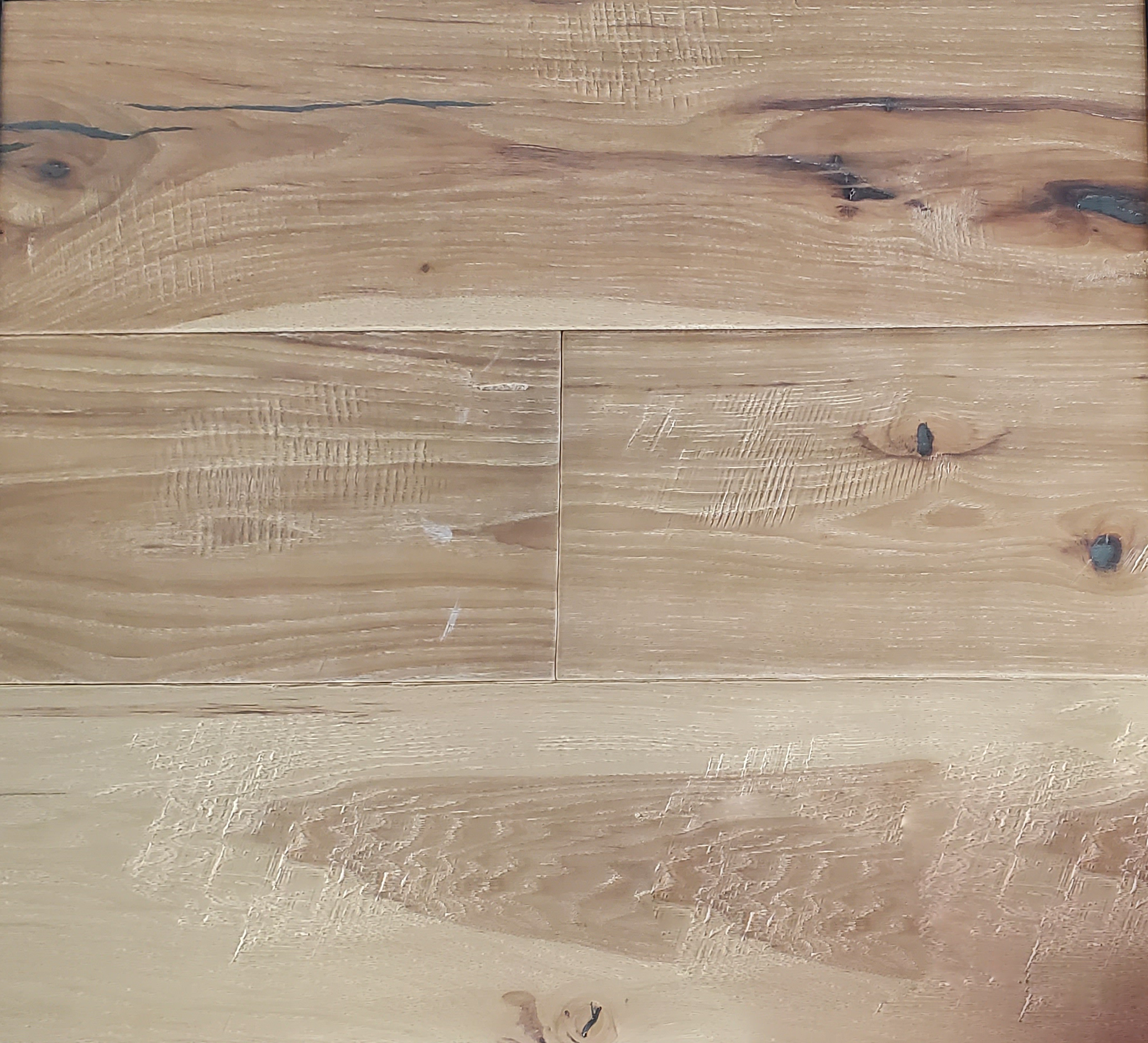 Obsession hand scraped floors emphasize each wood species’ natural beauty and character. The outer beauty of Obsession’s hand-scraped Seasons Stable Sawn showcases one of the most stable platforms in the industry. Seasons Stable Sawn trademarked platform is handcrafted with hardwood strips, which are uniform in density and lay across each floor piece. This platform works similarly to the ribs in a boat or canoe, holding the floor together and making the product more resistant to humidity changes in your home, in comparison to all other hardwood, engineered plywood, or constructive flooring products.