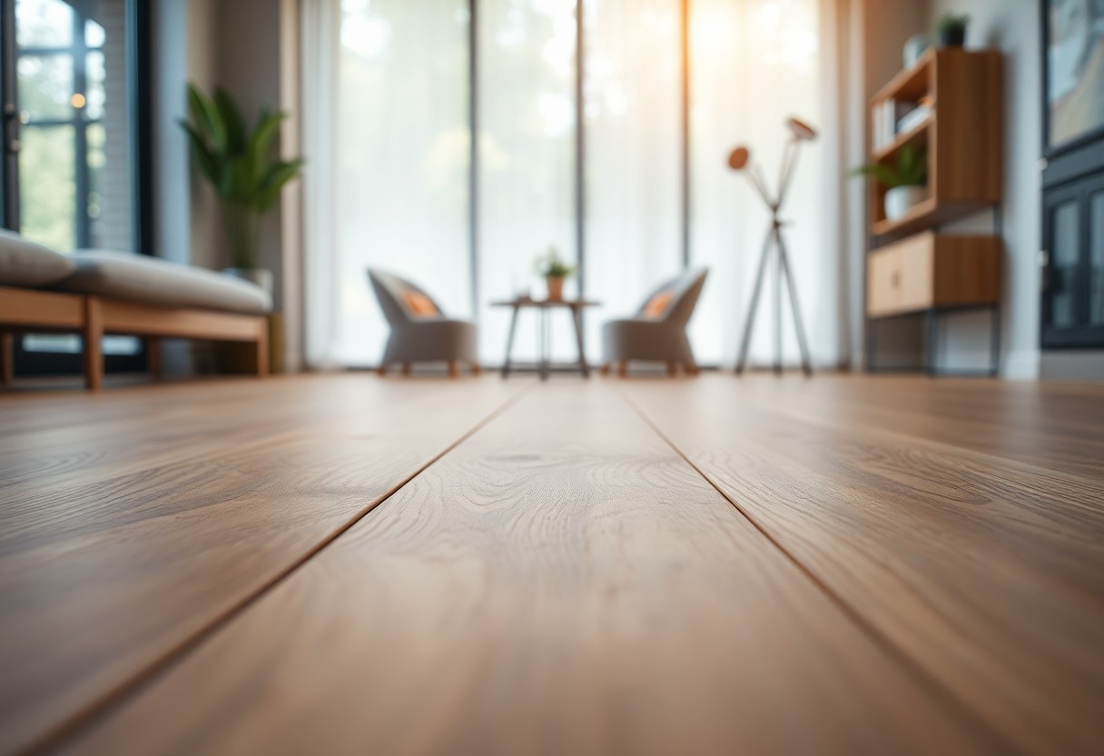 Just select durable, low-maintenance laminate with realistic wood grains, wide planks, and neutral tones so you can achieve timeless style; you will get long-lasting beauty, easy upkeep, and flexible designs that suit both modern and classic interiors.