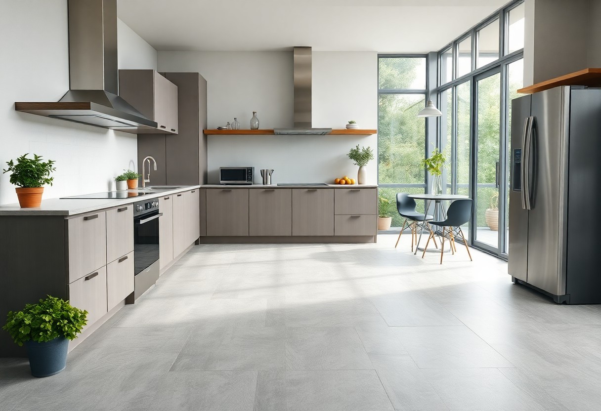 Captivating stone and marble finishes not only evoke the grandeur of natural surfaces but also bring practical benefits to your home. Many designs incorporate realistic veining and depth, creating an inviting ambiance that rivals authentic stone. You can choose from options like slate, granite, or polished marble, ensuring that your flooring complements your overall design motif. Additionally, the ease of installation and cleaning makes these finishes an attractive yet practical choice for homeowners wanting to blend sophistication with functionality.